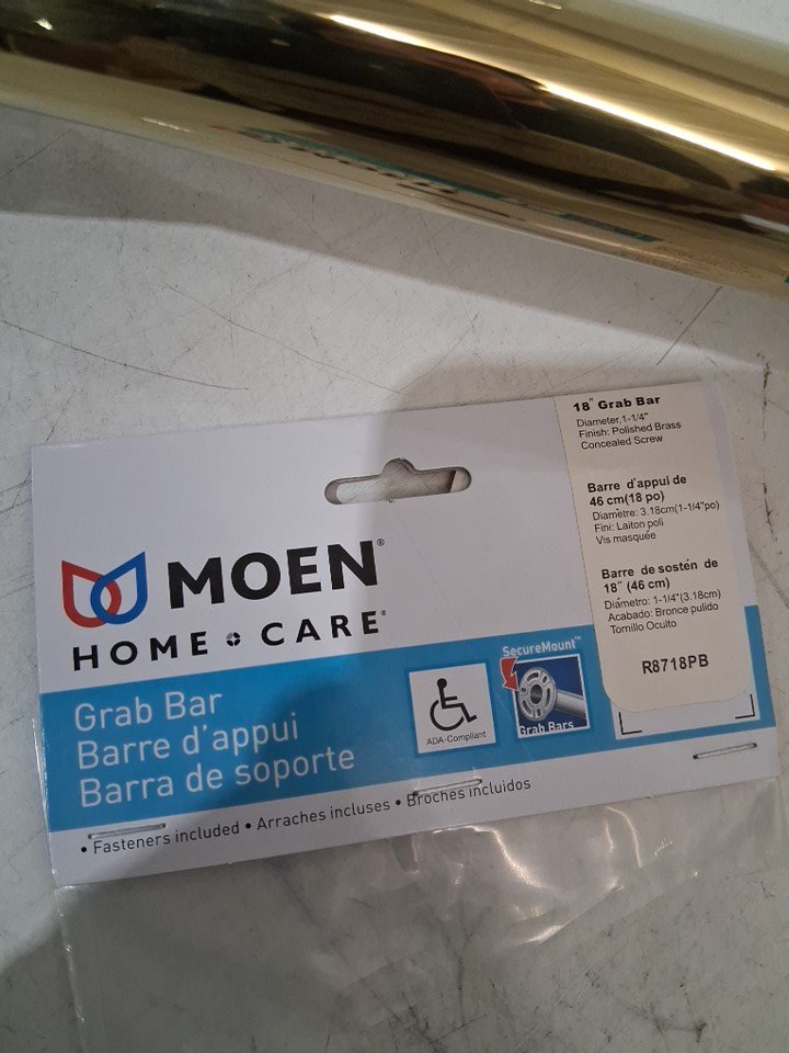 Moen Home Care Bathroom Polished Brass Concealed Screw Grab Bar - 18" - Gold Brass - (Model: R8718PB)