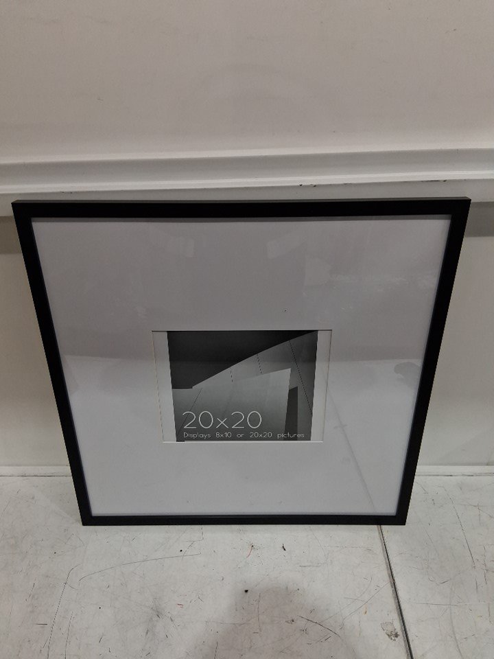 americanflat picture frame with polished plexiglass - 20" x 20" - 8" x 10" mat - black