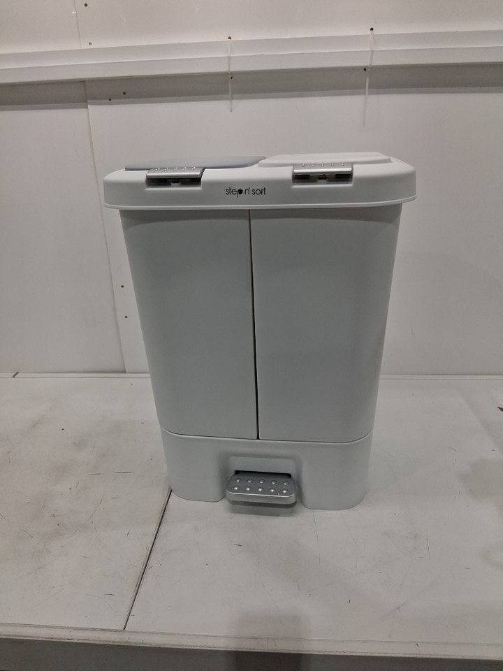 Step N' Sort 40L Dual Trash and Recycling Bin with Spring Top & STEP PEDAL - WHITE (MODEL: SNS402-W)
