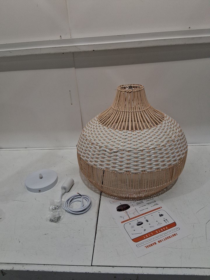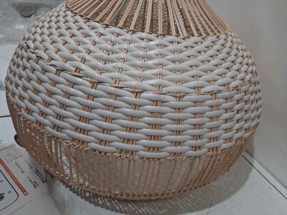 WalmHomie hardwire Handwoven Rattan wicker Pendant hanging Light Fixture with adjustable height- 19.68" x 19.68" - White/natural