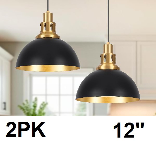 2pk Farmhouse dome vintage light fixtures - 12" - Black/gold - (Model: ST063-1-BG)