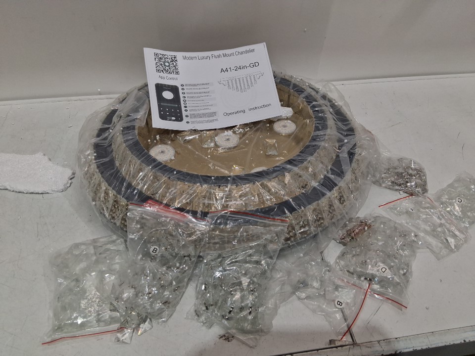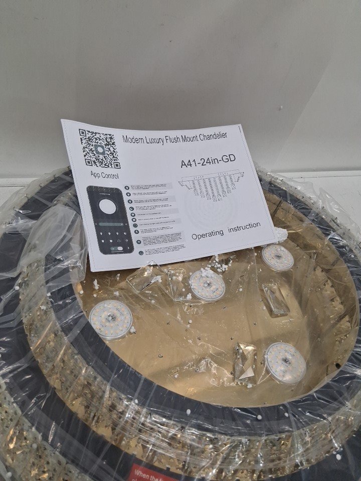 ABISGPT Dimmable Flush Mount Crystal Chandelier With Remote - 24" x 10" - 3000K-6000K (Model: A41-24IN-GD)
