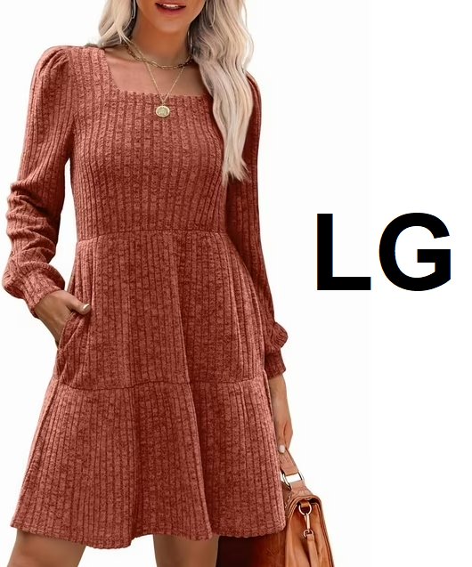 Womens Square Neck Long Sleeve Fall Sweater Dress - large - Brick Red