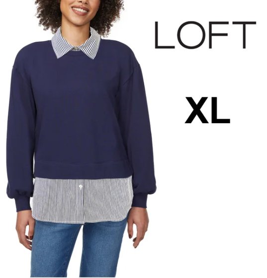 Women's Loft Layered Mixed Media Sweatshirt - Extra Large - Blue/White (Style: 1953608)