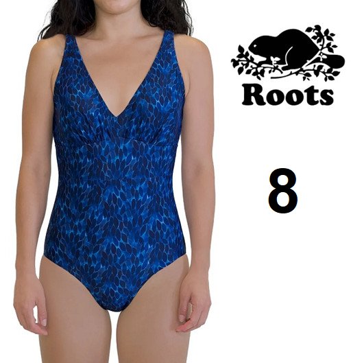 womens roots Criss-Cross V-Neck One Piece Swimsuit - size 8 - royal blue (style: 1795102)