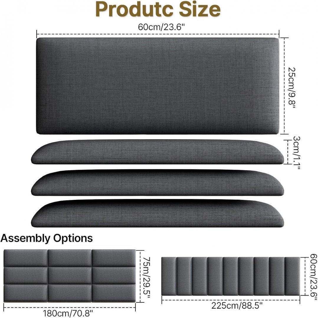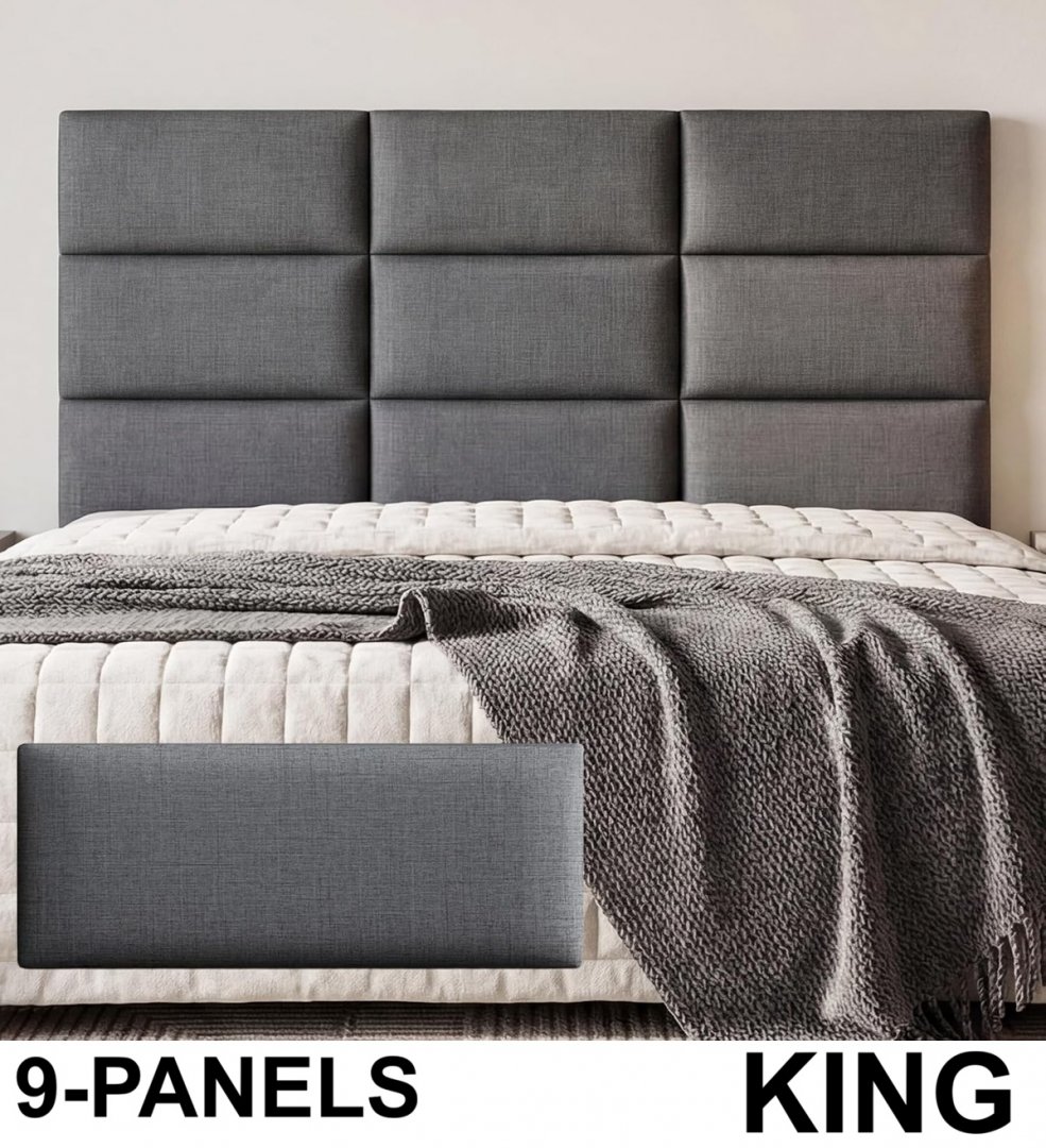 NBYTLT Soundproof Upholstered Headboard - 9 PANELS - 10" X 24" EACH - KING - DARK GREY