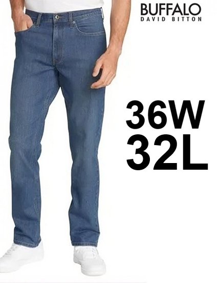 Men's buffalo David Bitton jack slim straight stretch jeans - 36w x32l - Blue (Style: 3396236)
