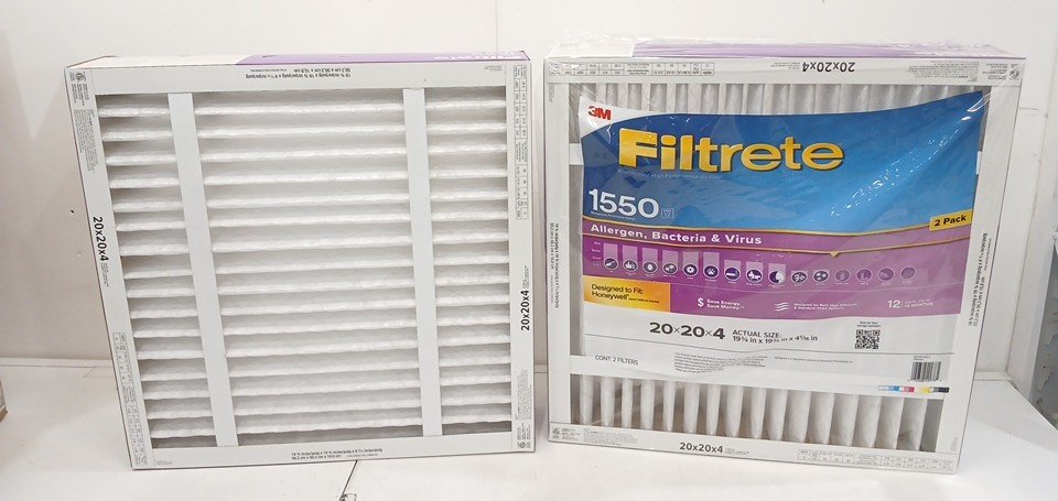 2pk filtrete 3m allergen, bacteria, and virus deep pleat AC Furnace Air Filter designed to fit honeywell, carrier, and lennox - 20" x 20" x 4" (model: 1550 )