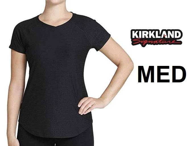 women's kirkland signature Active V-Neck Textured Tee - medium -black