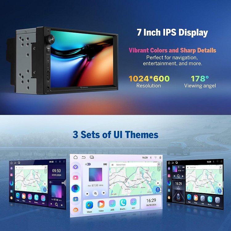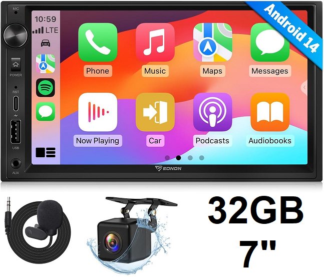 eonon bluetooth double din android car stereo with wireless apple play - 7" 32gb+3GB - black (model: ux7)