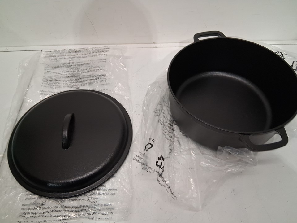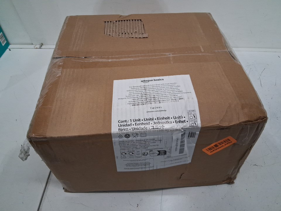 Amazon Basics Round Pre-Seasoned Cast Iron Dutch Oven Pot with Lid and Dual Handles - 7QT - Black (MODEL:KA7QT)