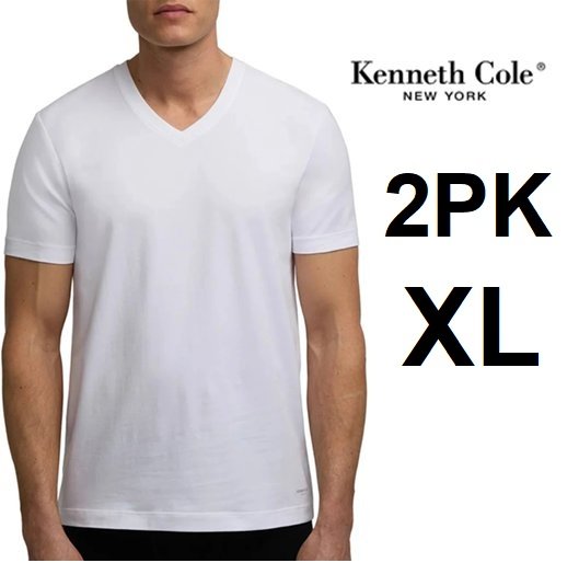 2pk Kenneth cole cotton stretch v neck t shirts - extra large - white