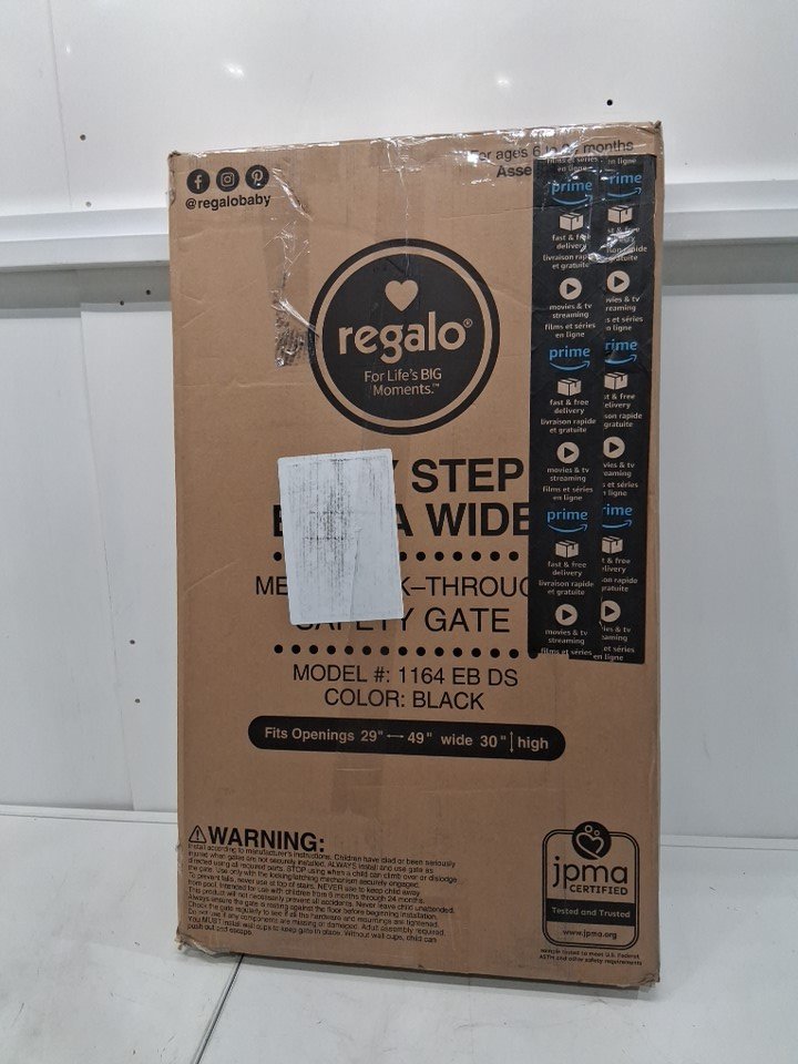 REGALO EASY STEP EXTRA WIDE METAL SAFETY GATE - 30" x 29" - 49" - BLACK (MODEL: 1164EBDS)