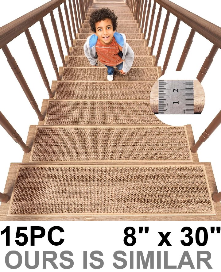 15pcs Solepops Linen non-slip indoor Machine Washable Stair Treads - 8" X 30" - Dark Brown