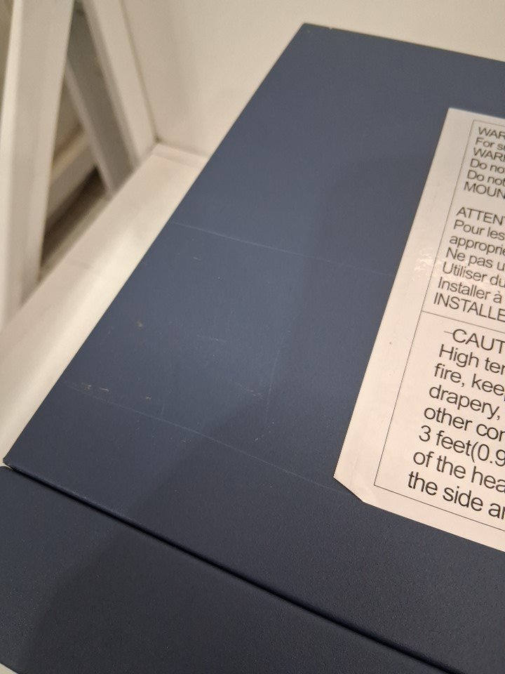 There are scratches on the top and bottom of the heater, there is also some minor paint chips on the top from previous use. *The small plastic piece on the back that looks like it holds wires is broken as well*. (Please see photos) *GENERIC CONDITION STATEMENT* Our staff is unable to fully test this item due to its nature of operation/function.