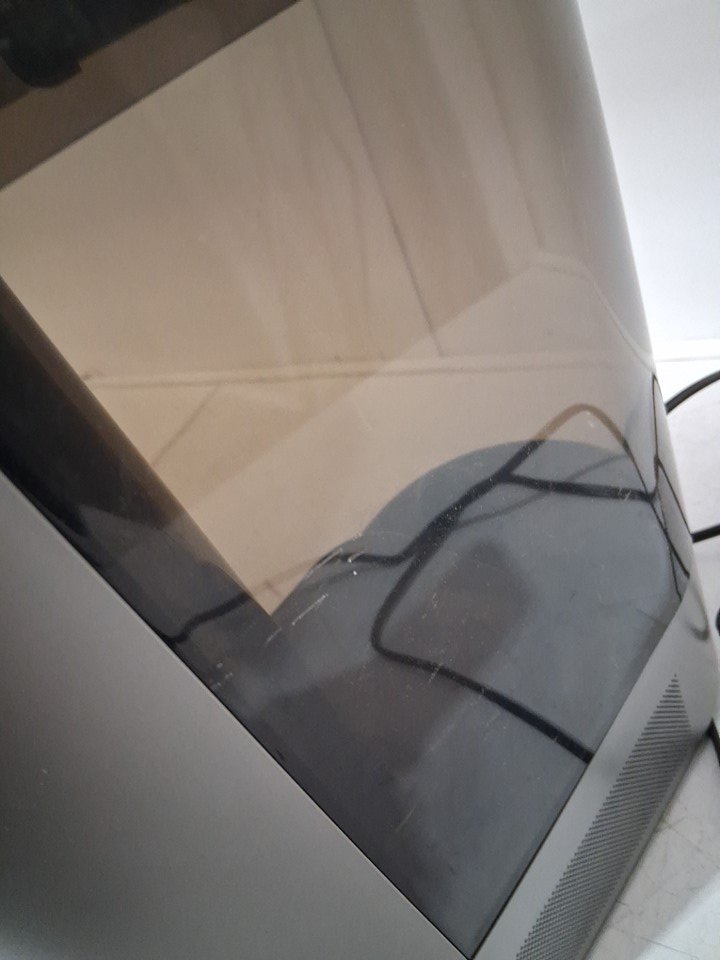 item has some scuffs on the sides, dust on the outside and some markings on the plastic on the side ( see photos)