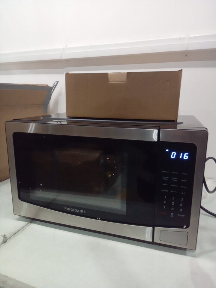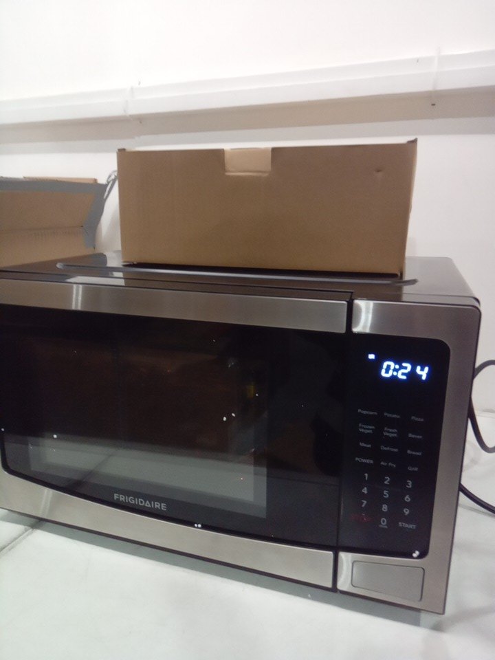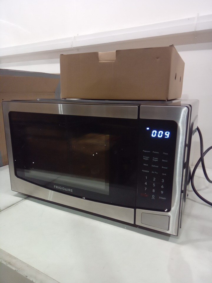 frigidaire 3-in-1 stainless steel microwave/air fryer/convection - 1.1cu.ft - 1000w - 23.3" x 19.1" x 12.4" - stainless steel/black (model: emw1220-b)