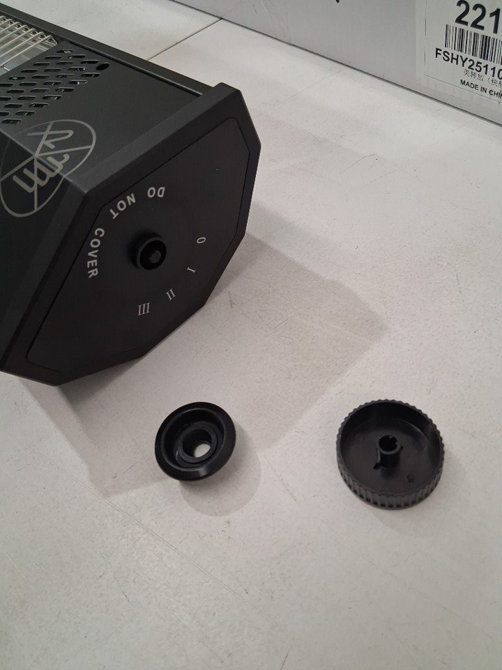 There is some residue on the heater/stand indicating previous handling and potential use. Please note that the knob is broken, but might be repaired with glue (see photos) Tested for power (using pliers to turn knob)