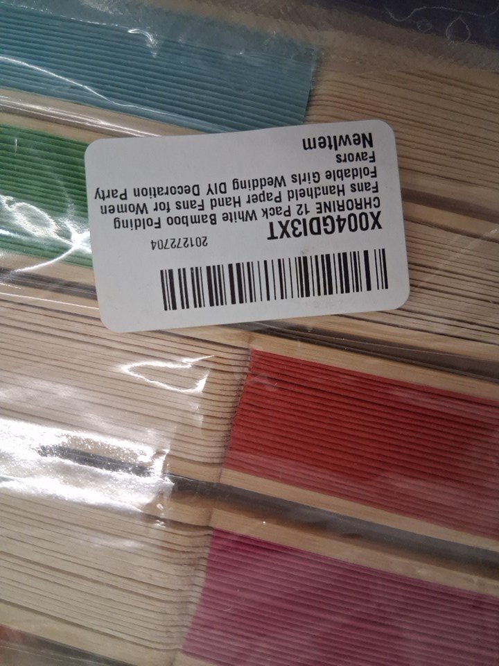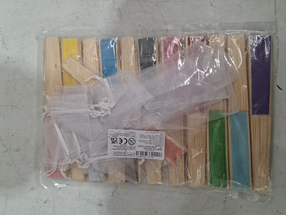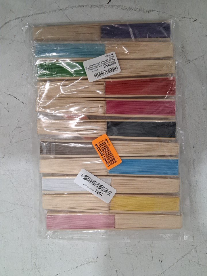 12PC CHRORINE Bamboo wedding Folding Fans - 8" x 15" - Multicolor