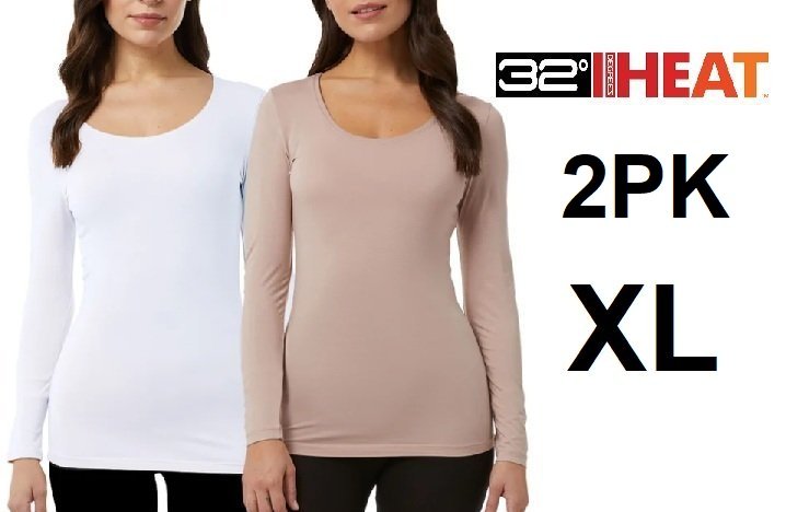 2pk women's 32 degrees heat Eco Heat Long Sleeve Baselayer Top - extra large -white/beige (style: 1910446)