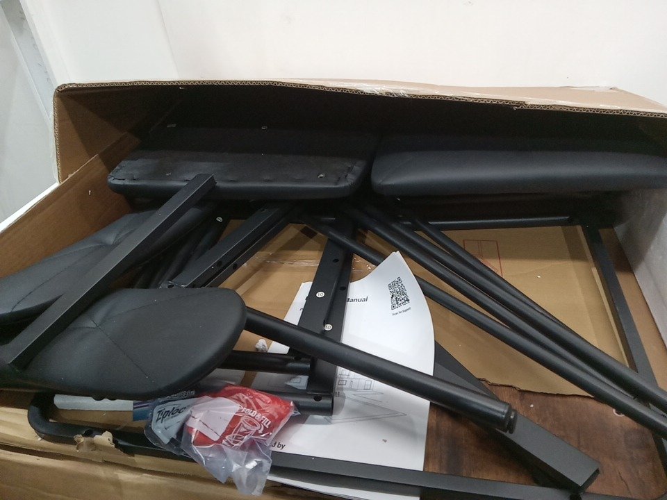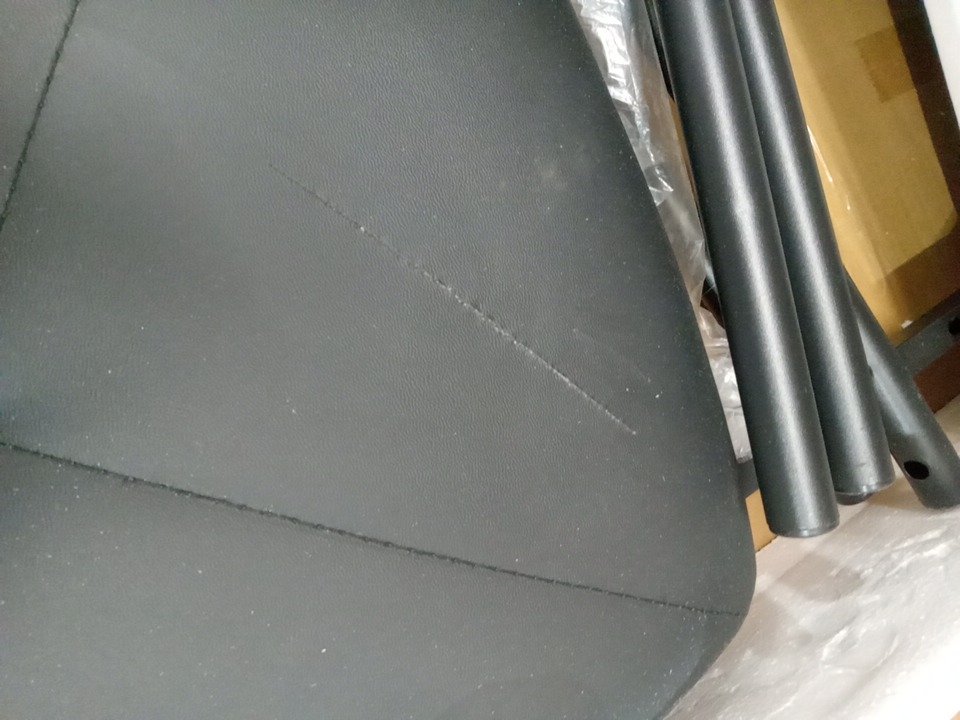 One of the chairs has a scratch/tear in the seat. Marks on the frame from previous use.