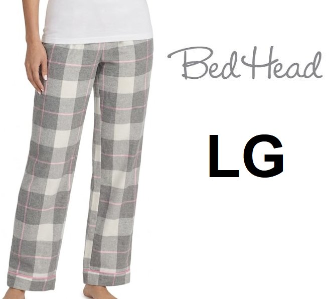 WOMEN'S Bedhead 100% cotton pajama pants - large - grey/light pink plaid (style: 4323332)