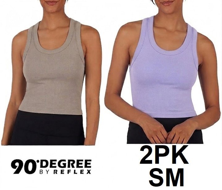 2pk women's 90 degree by reflex ribbed tank tops - small - purple / beige (style: 1870412)