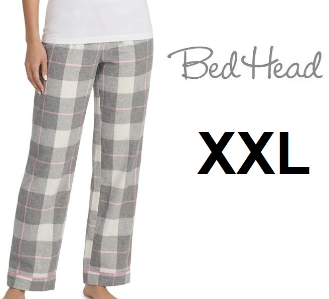 WOMEN'S Bedhead 100% cotton pajama PANTS - XXL - grey/light pink PLAID (style:4323334)
