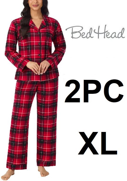 2PC Bedhead cotton pajama PANTS AND SHIRT set - extra large - red plaid ( style: 4323333 )
