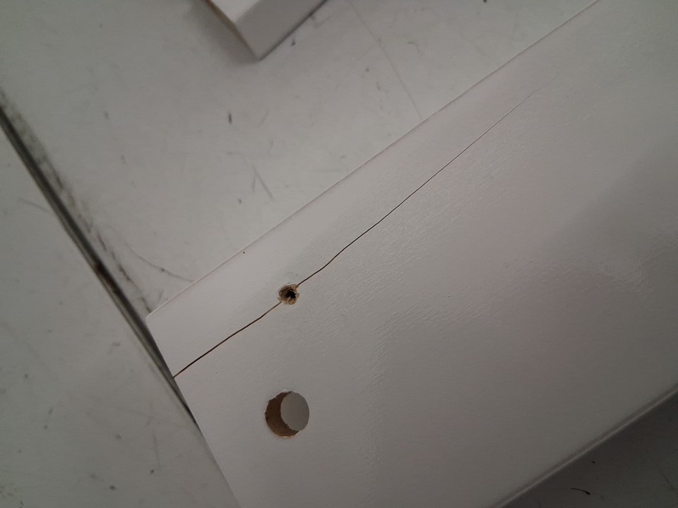 someone has drilled a hole/tried to put a screw in one of the side panels which has caused a small crack (see photo)