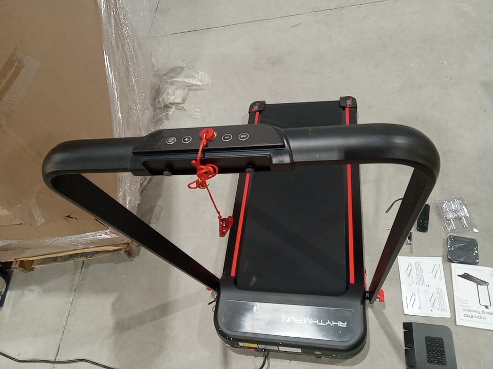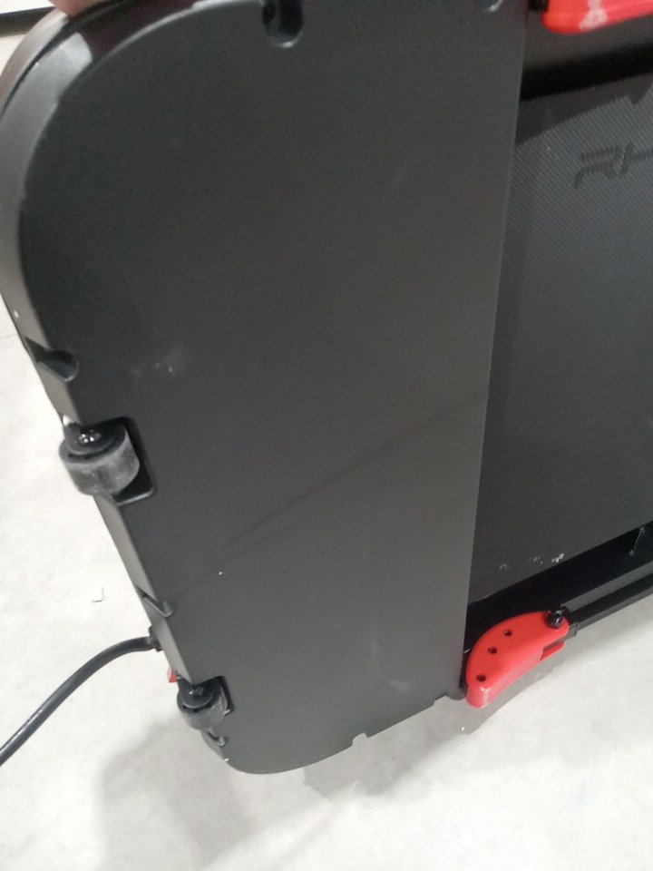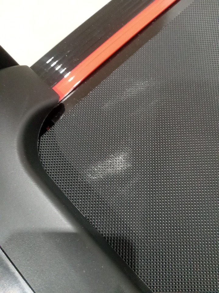 Their are some white scuff marks on the running pad, this seems to be from the Styrofoam packaging and due to shipping and handling, this item has been tested for power and is confirmed to be working. all accessories and parts are present. see photos