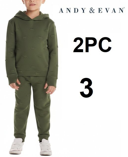 2pc infant andy & evan dino texture hodie and jogger set - size 3 - olive green (style:1917617)