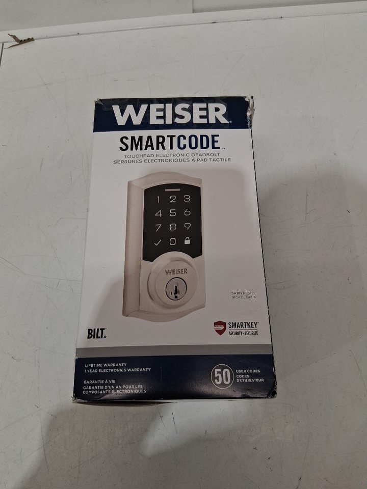 WEISER SmartCode Contemporary Touchpad Electronic Deadbolt Lock WITH 50 USER CODES - Satin Nickel (MODEL: 9ged92700-003)