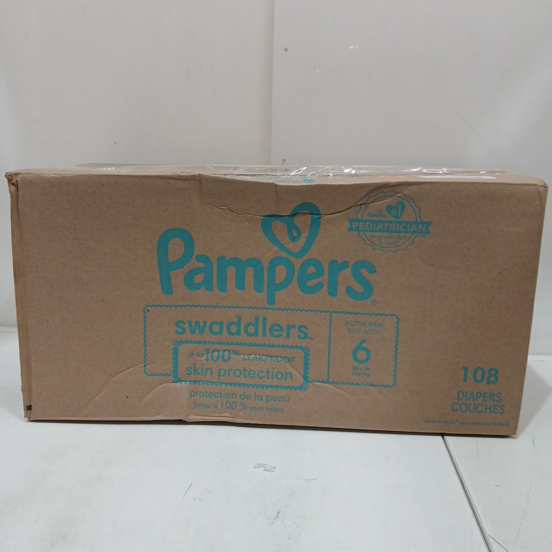 108PK PAMPERS SWADDLERS ACTIVE BABY DIAPERS - size 6 - 35+LBS