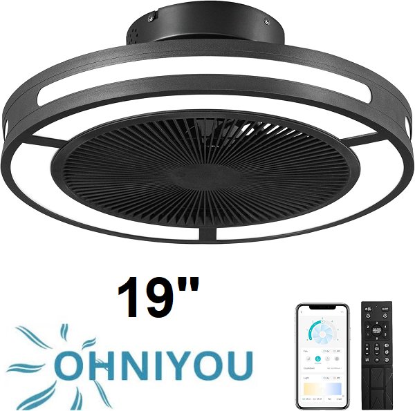 Ohniyou Enclosed Low Profile Ceiling Fan - 19" - BLACK