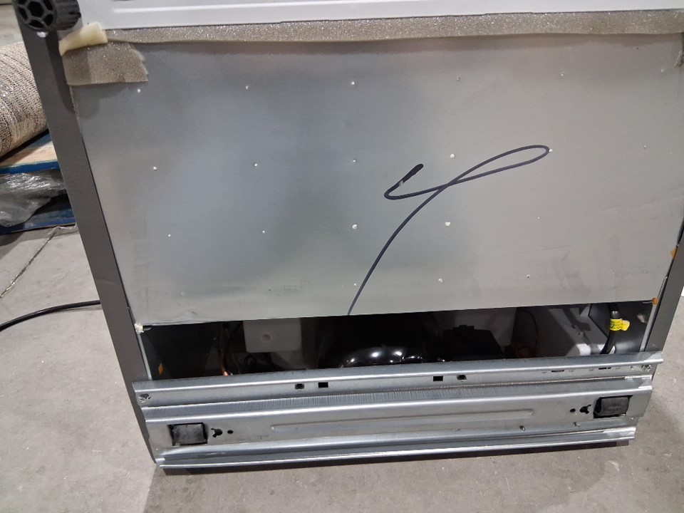 The hinge to the door is broken/bent from shipping/handling. The door does not fully connect as is. In its current state the fridge may be unusable due to the door not being sealable. Customer would have to fix the hinge to make it usable with maintenance and repairs. Customer would be recommended to bring a large vehicle for pickup due to the large nature of the product.
