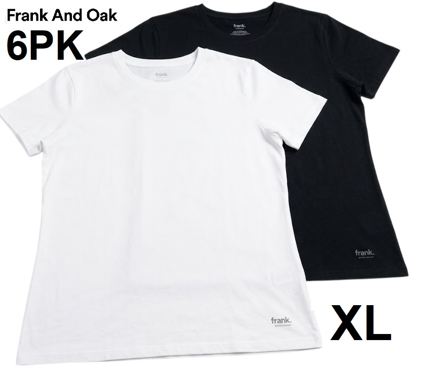 6pk women's frank by frank and oak crew neck t-shirts - extra large - black/white