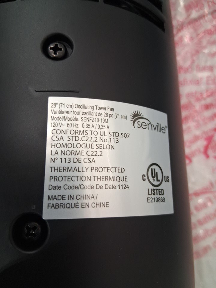 SENVILLE OSCILLATING TOWER FAN - 27" - 3-SPEED - 60° OSCILLATION - BLACK (MODEL: SENFZ10-19M)