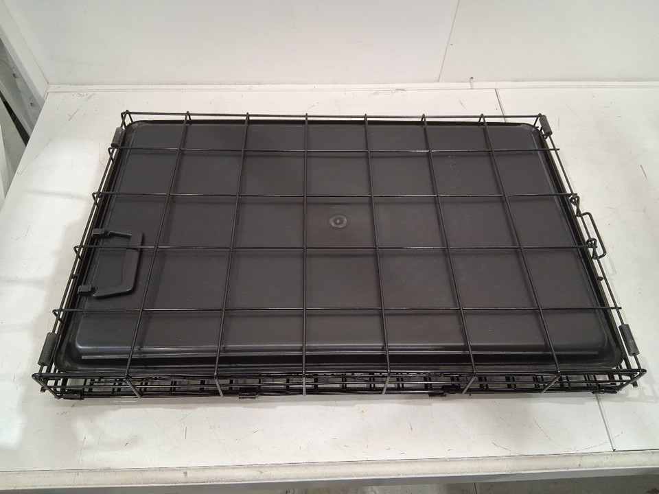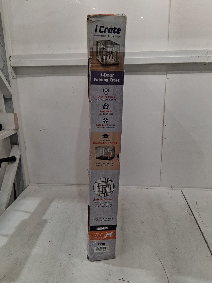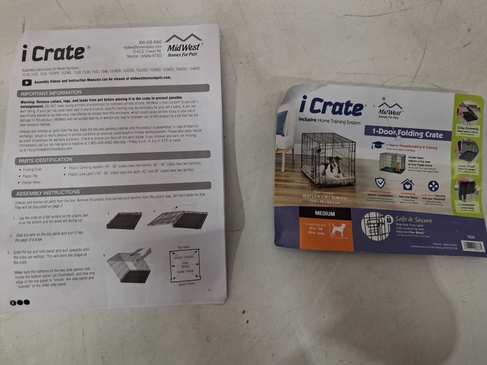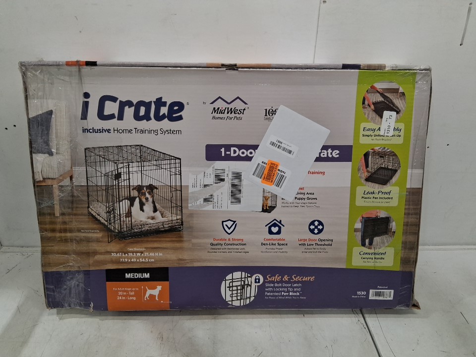 midwest icrate double door folding metal dog crate for medium dogs - divider panel, floor protecting feet & dog tray - 30.67" x 19.3" x 21.46" - black (model:1530)