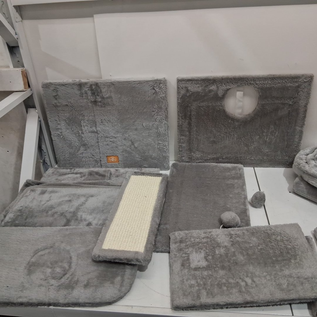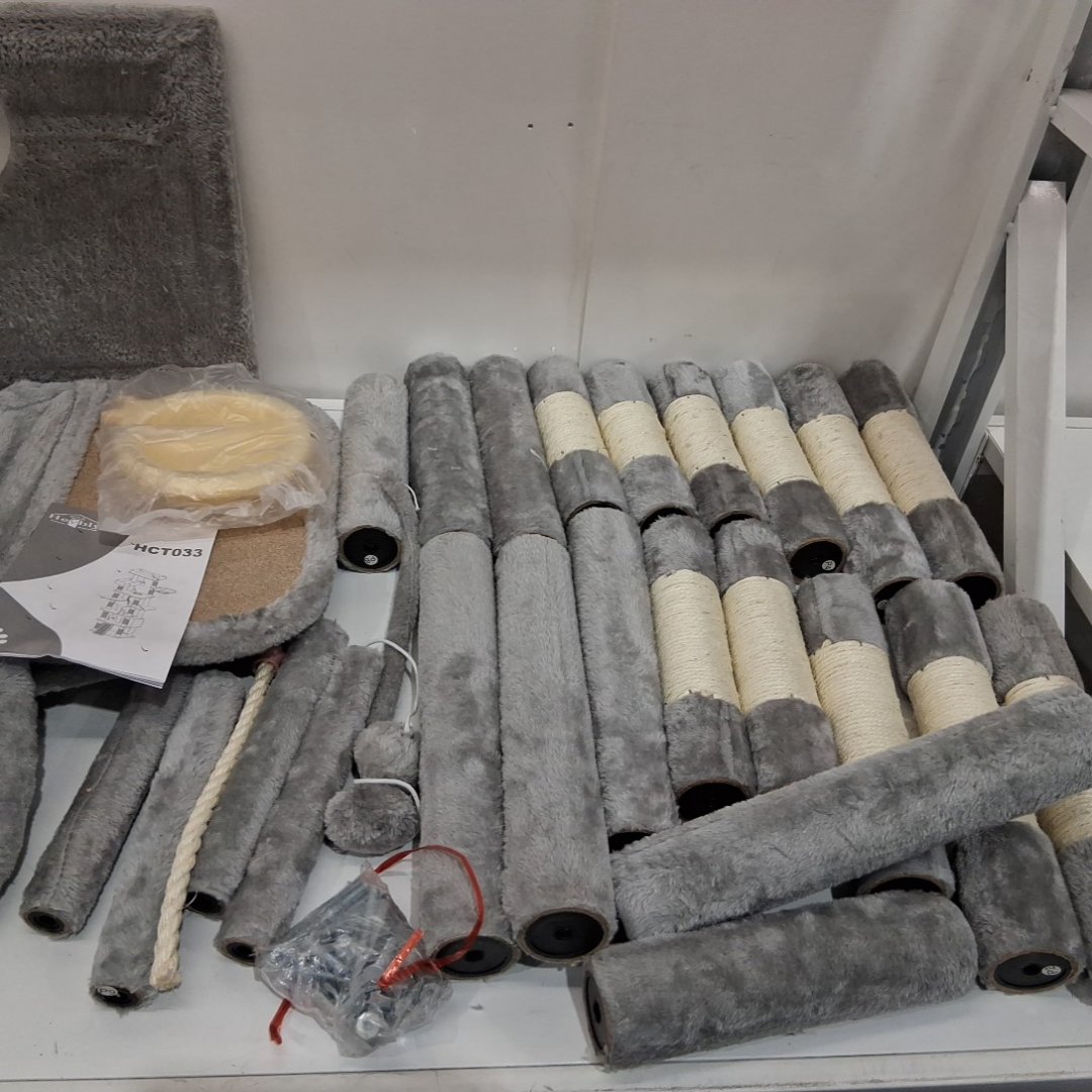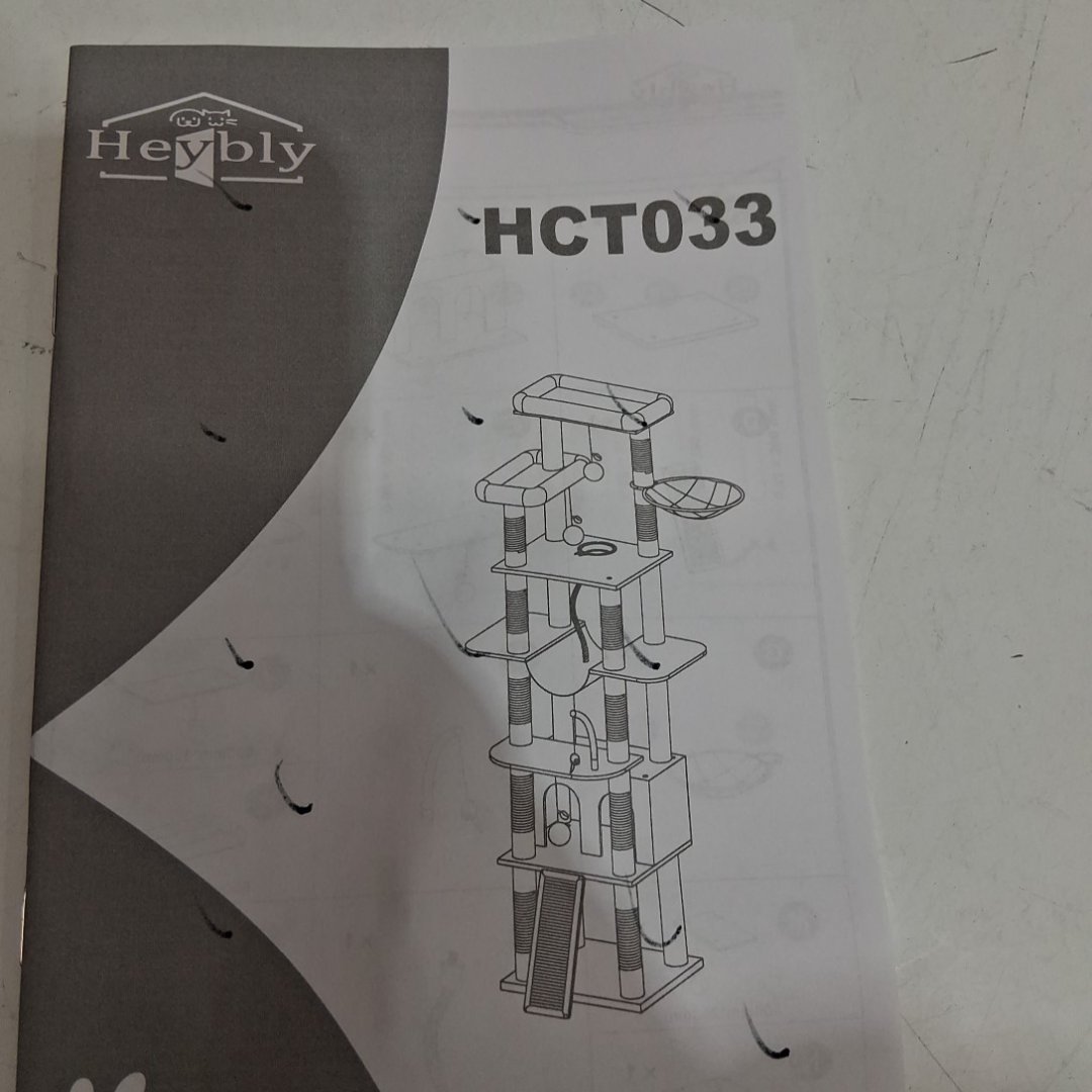 heybly multi level cat tree with scratching posts, cat house and hammocks - 78.7" x 15.6" x 19.7" - grey (model: hct033g)