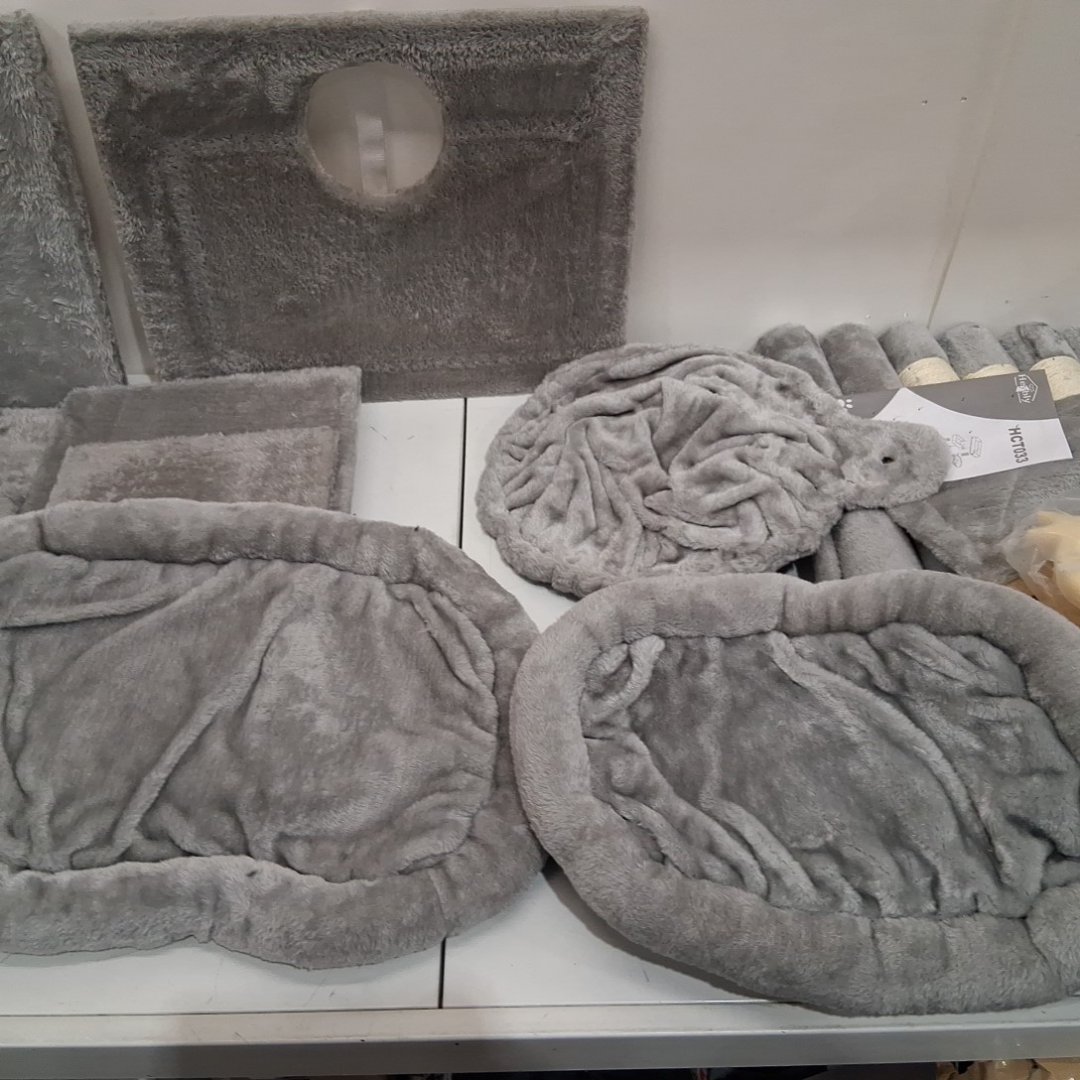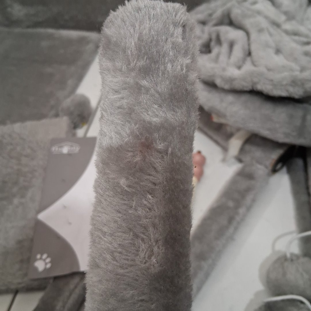 There is some pet hair on the item and small pink spot from previous use. (see photos)