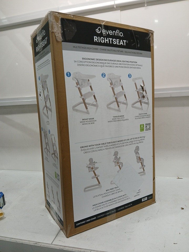 evenflo rightseat multistage highchair - 25" x 18.6" x 31.9" - sea salt white - (model: hc100122518)