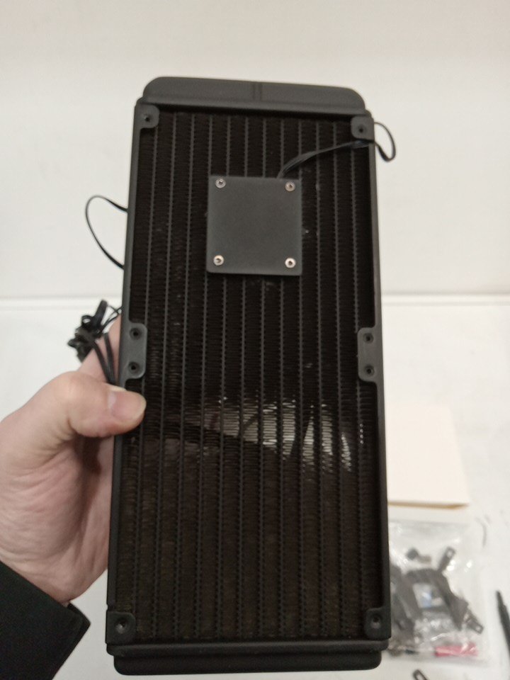 Item has installation marks present and cpu paste residue as a result from previous use. Unable to test item due to it's nature. Some of the included hardware/brackets may not fit the item as it has been repackaged. See attached photos.