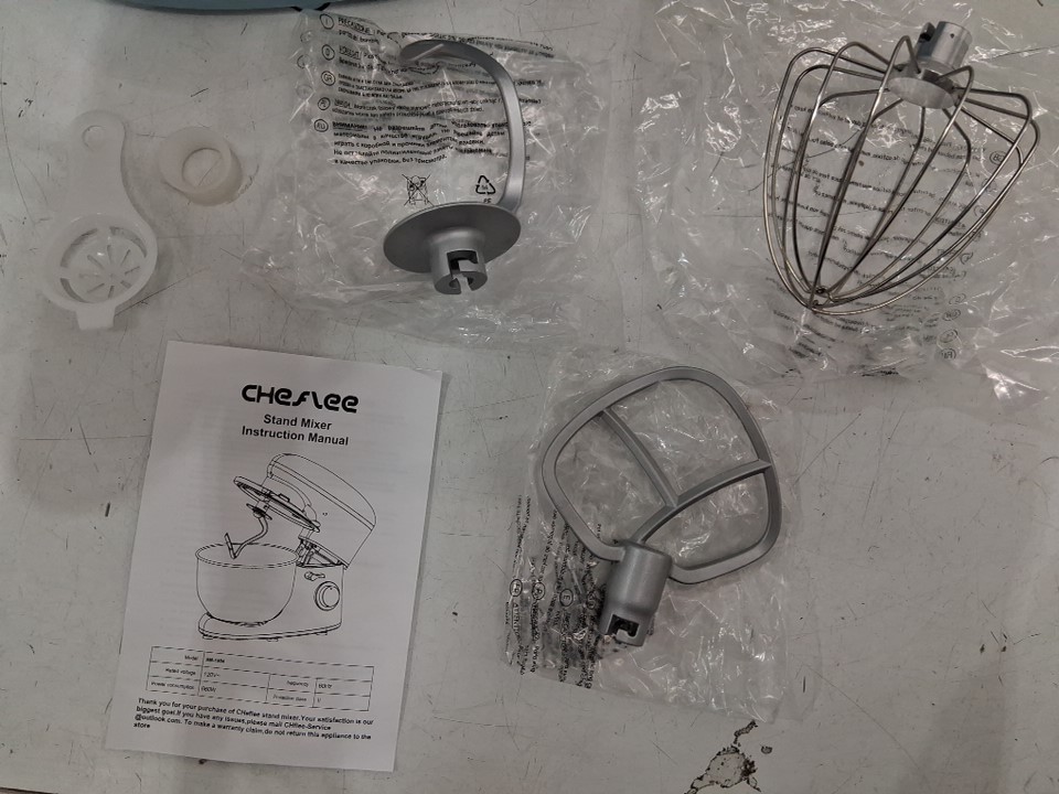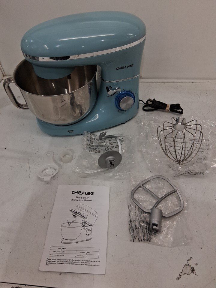 Cheflee Stand Mixer with Stainless Steel Bowl, Dough Hook, Wire Whip and Whisk - 6 Speed + Pulse - 600 Watts - 6.5 Quart - Blue (Model: SM-1504)