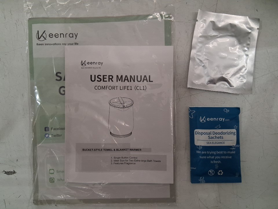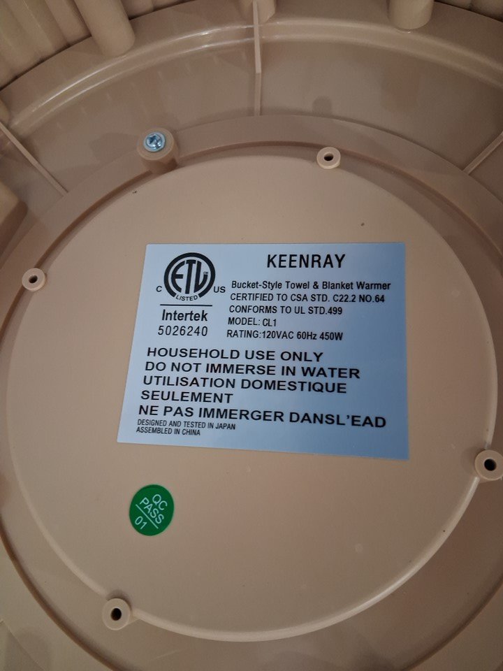 KEENRAY LUXURY BUCKET TOWEL WARMER WITH AUTO SHUT OFF - FITS x2 OVERSIZED 40" x 70" TOWELS - white (MODEL: CL1)