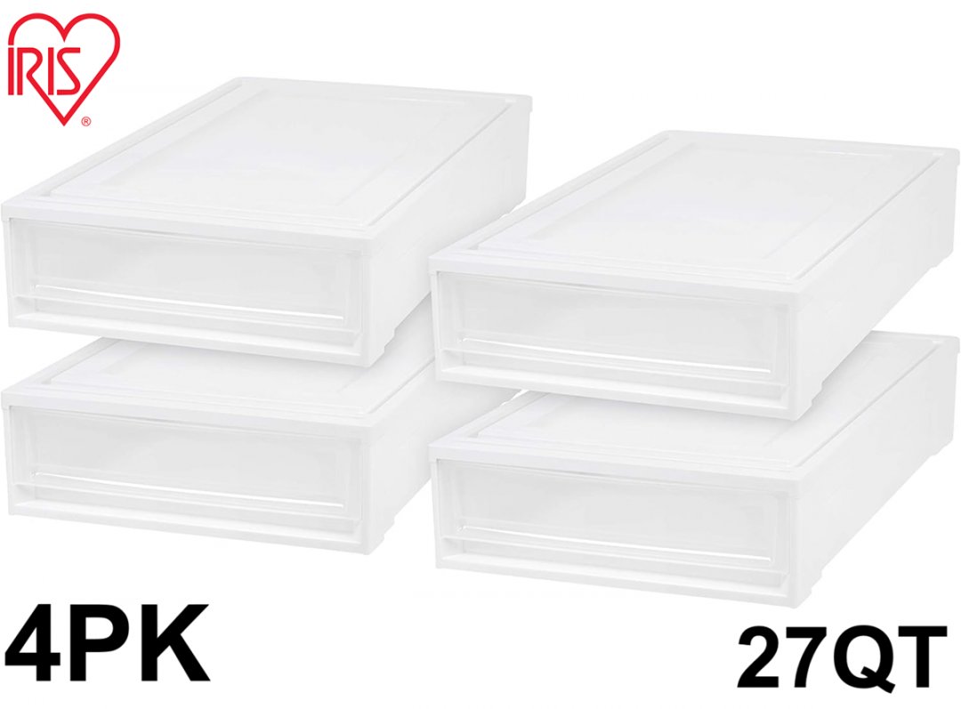 4PK IRIS Under Bed Storage Container Box - 27QT - Clear/white (MODEL: BC-UB)