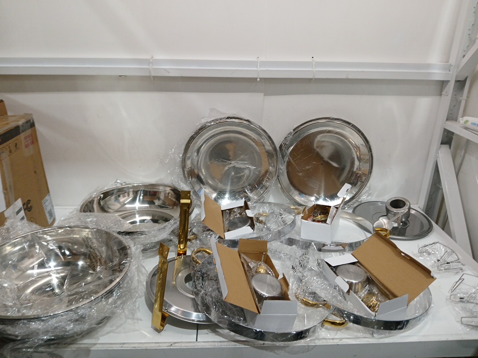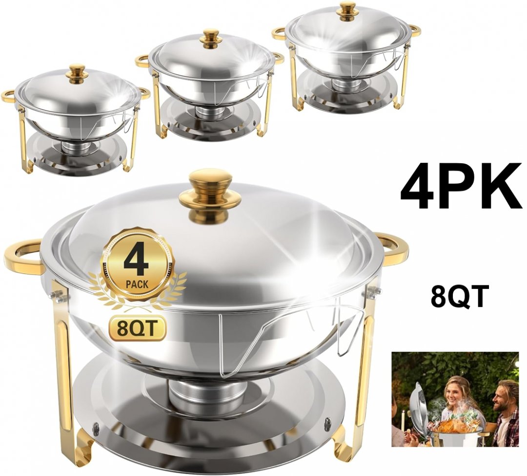 4pk Chafing dish Warming Trays with Chafing Fuel Cans and serving accessories - 8QT - gold silver
