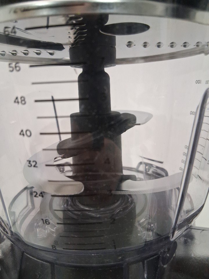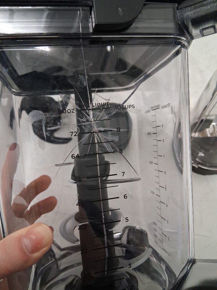 blades show signs of use. the large blender is cracked on the one side, these are replaceable parts. tested for power.