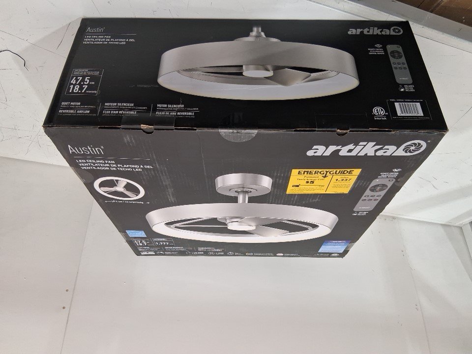 artika Austin modern indoor LED light ceiling fan with remote - 2000lm - 120v - 23" round - brushed nickel (model: FAN-AUR-BN)
