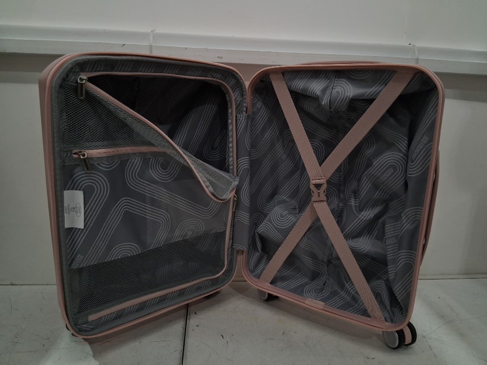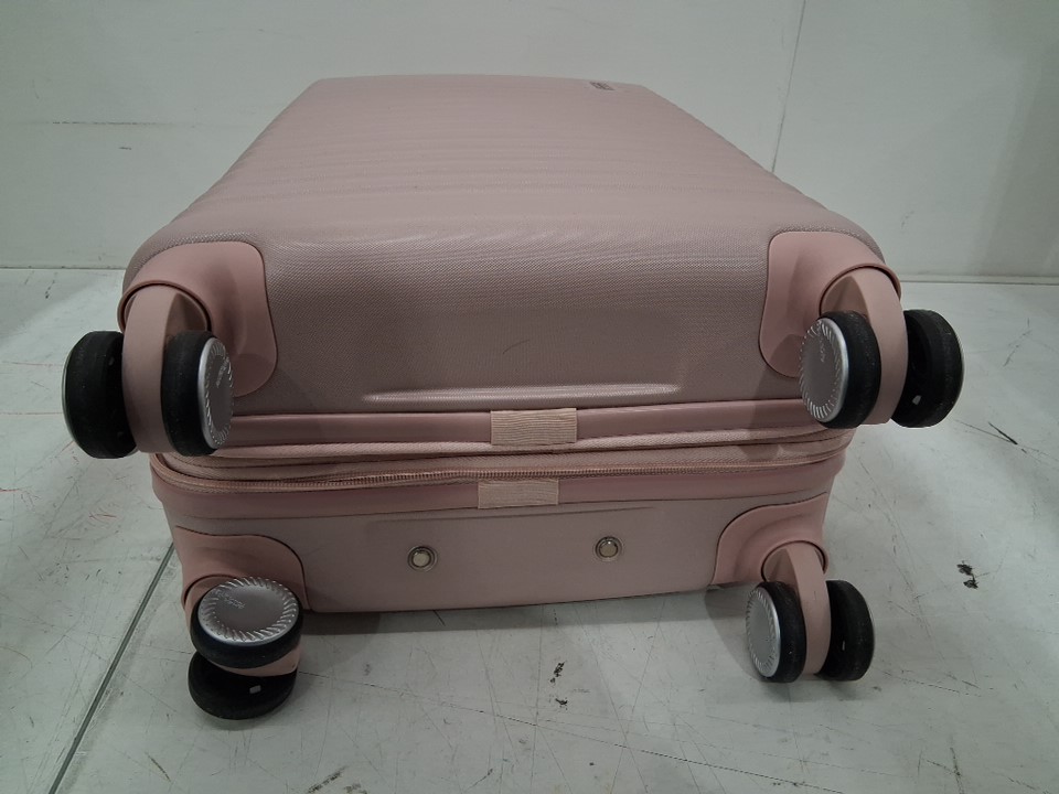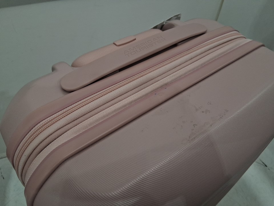 Residue on the outside shell. Will need scrubbing to remove. Also dirt on the wheels from prior use. See photos.